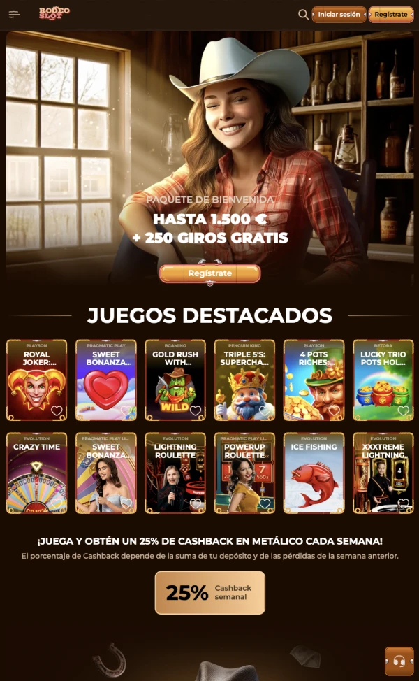 Nos centramos en una experiencia segura y fluida en navegadores modernos, con navegación rápida y menús claros. Desde el registro hasta los pagos, puedes completar los pasos clave directamente en el móvil, incluidos los depósitos en EUR y las retiradas a monederos populares o criptomonedas. Si estás listo para empezar, abre RodeoSlot Casino en tu dispositivo y juega con las mismas funciones que esperarías de un sitio de casino completo.
